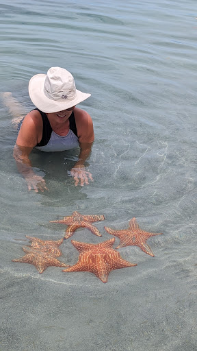 Read moreI loved this beach. It was one of my favorite of all the beaches in Bocas island hopping. But I was told I only enjoyed it because it was empty due to travel just opening back up in Panama and the pandemic still hampering tourism. Essentially, it was empty the day I visited except for the three other small groups who were clearly Panamanian travelers visiting for their national holiday. I can see how this precious spot could be overrun by water taxis and tourist splashing around with the starfish and disturbing this pristine environment. So, go now! Or in the off season. Because these beaches are empty and private and it’s Luxurious and virus safe to have them practically to yourself. There are several “restaurants” more like snack shacks serving fresh fish and cocktails on the beach and they have lounge chair service. This is a common sight at popular beaches like these in Central and South America. Out of The numerous snack shacks on the beach, only one was open, El Sabor Flavor, run by Aida and her family. They had standard Panama virus protocol protections in place, even though we were outside on a beach. You had to have your temperature taken, and sanitize your hands before ordering from their chalkboard menu. They were all wearing masks while serving and cooking food too. Bring cash. It’s a cash only spot like most places like this. The food was delicious. I got shrimp and rice and the salad was great too. Aida, the owner, was busy making gorgeous beaded bracelets on the beach, in hopes she would have sales for the Christmas season. I bought two and they are divine. She wrapped them in adorable holiday paper. And the beach: gorgeous! Clear water for snorkeling or just enjoying the starfish and fish. But please do not touch them. Go before it’s overrun by tourists again and it doesn’t feel as safe. Getting there on a US airline SAFELY during a pandemic is the trick with no mask enforcement and idiots blowing their nose on the plane because they have no consideration for others in the United States. Fly Copa or just wait to go in the off season when you are vaccinated and won’t potentially die to see this...