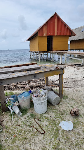 There is trash everywhere all over the island and on the beach, and there are multiple direlect cabins, bathrooms, and buildings that have been torn up through age or weather. Particularly nasty is an old bathroom that is at the end of the main restaurant dock that smells strongly of sewage and clearly has just been rotting for a number of years. There are literal piles of trash and broken building pieces behind the restaurant (see pictures), and really there is only one real small area that is beach that you can use. It is about a 50m stretch between the cabins and the restaurant that is beautiful. The rest of the island beach area is not usable for guests. There are some small paths on the island, but they run to a small generator building and a small water pumping station. Really the only thing on the island is the restaurant, the cabins, and the beach. There is nothing else for guests and it's somewhat constraining.