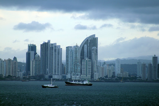 A bit of a cheat as I am actually aboard a cruise ship about the traverse the canal. However, these distance shots of panama city are looking across Panama Bay and would be the same, albeit from a higher vantage point, albeit possibly higher. I traversed the canal twice, 4 years apart and the difference in the downtown skyline was dramatic. The corkscrew building and curved top building were not there during my first transit, as shown in the final...