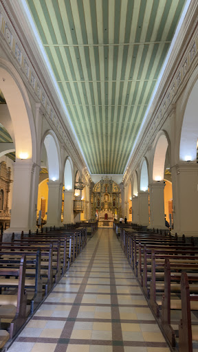 Su imponente fachada barroca, adornada con detalles intrincados y esculturas meticulosamente talladas, da la bienvenida a los visitantes con una sensación de grandeza espiritual. Al ingresar, se revela un santuario lleno de solemnidad y belleza. Los vitrales coloreados filtran la luz, creando un ambiente celestial que invita a la reflexión.