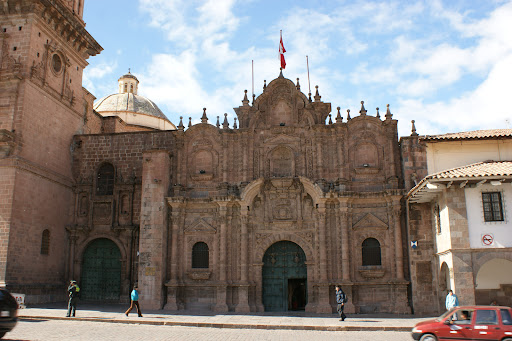 LA COMPAÑÍA DEL CUSCO La iglesia está fabricada principalmente con andesitas y tiene la fachada más hermosa y elaborada entre las iglesias de la ciudad; sobre su puerta de ingreso existe una Virgen de la Inmaculada Concepción labrada en berenguela (material parecido al mármol); tiene dos capillas exteriores adosadas a la estructura principal, hacia el norte está la capilla de la Virgen de Loreto (desde 1894 es conocida como la Capilla de la Virgen de Lourdes) que hoy aún sirve al culto y donde casi siempre se venera al Señor de Burgos que fue trasladado de la demolida iglesia de San Agustín; y hacia el sur, la capilla de San Ignacio de Loyola que fue adjudicada a la Sociedad de Artesanos del Cusco. La Compañía de Jesús en su interior posee una sola nave donde resalta al fondo el imponente retablo mayor tallado en cedro y completamente dorado con hojas de oro por Cristóbal Clemente hacia 1670, mide 21 metros de altura por 12 de ancho. En la parte central del retablo se halla la imagen en bulto de la Virgen de la Inmaculada Concepción, más arriba un lienzo representando la Transfiguración del Señor y encima un personaje de la orden. La nave principal ostenta además un transepto que comunica con las dos capillas laterales, seis retablos con diversos estilos y un púlpito totalmente dorado que culmina con una escultura de San Francisco Javier; hacia los costados del retablo mayor se hallan otros cuatro retablos de cedro, tres de ellos dorados y bastante ostentosos. Luego de los trabajos de restauración posteriores al sismo de 1986 se descubrió una interesante clausurada capilla subterránea casi debajo del retablo mayor. En la parte superior, alrededor de los ventanales de alabastro (también conocido como "piedra de Huamanga") se encuentran lienzos que representan la vida del fundador de la orden, San Ignacio de Loyola, pintados por Marcos Zapata y su ayudante Cipriano Gutiérrez. Al interior, en ambos lados de la puerta principal hay dos lienzos representando ambos a San Ignacio de Loyola, en uno curando enfermos y en el otro victorioso sobre los herejes y cismáticos que motivaron la reforma religiosa. En esta zona también se hallan dos lienzos de bastante valor histórico, el de la pared norte representa el matrimonio del capitán español Martín García Oñás de Loyola, sobrino de San Ignacio de Loyola y captor de Túpac Amaru I, con doña Clara Beatriz Coya, hija de Sayri Túpac y por lo tanto sobrina de Túpac Amaru I, heredera absoluta del Marquesado de Oropesa; de este matrimonio nació Lorenza Ñusta de Loyola que fue esposada por don Juan de Borja, hijo de San Francisco de Borja, cuyo matrimonio también se representa al otro lado del mismo lienzo; resaltan a un lado los incas Túpac Amaru, Sayri Túpac y la princesa Clara Beatriz con vestimenta autóctona y detrás un nativo sosteniendo la "achiwa" (especie de sombrilla hecha de plumas multicolores de aves que solo usaba el inca). El lienzo de la pared sur representa los matrimonios de Beltrán García de Loyola con Teresa Idiáquez y de Juan Idiáquez con Magdalena de Loyola. Hacia el sur de la capilla de San Ignacio de Loyola se encuentra el local del actual Paraninfo Universitario de la Universidad Nacional de San Antonio Abad del Cusco que originalmente sirvió de local para el local de la Universidad de San Ignacio de Loyola que fue parte del Colegio de la Transfiguración, creada por bula papal de Gregorio XV en 1621. A la expulsión de los jesuitas en 1767 el local pasó a cumplir la función de cuartel militar donde padeció prisión José Gabriel Túpac Amaru; posteriormente fue cedido para la universidad antoniana ya que en 1598 se había fundado el Colegio Seminario de San Antonio Abad en su local de la actual plazoleta de las Nazarenas; un siglo después, en 1692 una "breve de erección" dada por el Papa Inocencio XII creó la Universidad de San Antonio Abad dependiente del...