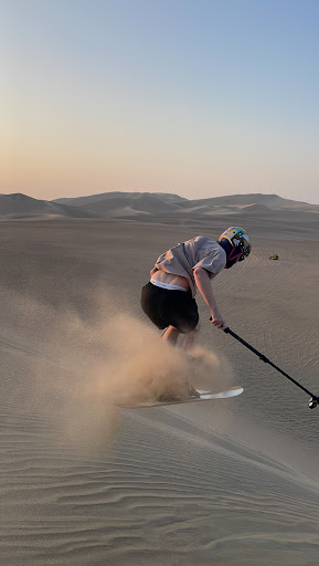 The best of the best! If you want a super fun & adrenaline experience on the sand dunes with a buggy, and sanboarding or sandskiing, look no further! Even with no previous experience ever skiing or snowboarding before, Jhonny went out of his way to ensure I got the most out of our 4 hour session. We arrived at the office at 3:30pm where we were fitted with professional high quality equipment (boots/board/helmet) and while we waited for everyone jhonny got us to practice on a balance board. We set off as a small group of 6, with 3 instructors. This ensured enough attention was paid to everyone 1:1. We started off on the buggy where the driver took us on a rollercoaster ride up and down the dunes, which was exhilarating!! But felt totally safe and professional. We started off sandbaording on a smaller dune and worked our way up, doing 5 dunes with 6 total runs, always collected at the bottom by the buggy so no energy was wasted. Jhonny is a sandboarding champion and he teaches his skill so professionally, you are being taught by the best of the best! I went from zero to taking on huge dunes with full confidence! Not only this, but he takes the most amazing professional photos and videos. If I had more time in Huacachina I would do again and again!! 10/10...