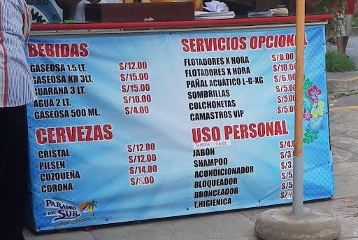 Read morePara iniciar fui con mi familia a pasar un dia agradable pero me di con una decepcion total basicamente por lo sobre valorado que esta todo ahi , el luegar es digamos agradable dentro de lo que hay en alrrededores , lo malo es es que cobran de todo si no me cobraron por respirar es por que el aire es gratis,cobran lo siguiente: Parqueo S/ 10.00 (Cuando es parte del local y no se hace responsable de cualquier perdida o daños, osea te cobran solo por tener tu auto ahi) las entradas S/70.00 por persona dentro tines que ir temprano por qu eno ecuntras mcuhas ubicaciones y tines que irte la fondo o al grass la sombrilla y colchonetas para las tarimas S/ 10 soles cada una es decir una sombrilla S/10 y colchoneta S/10 no te dejan ingresar alimentos a la justas botella de agua, te revisan todo con lo que ingresas. la alimentacion siuper cara un pollo ala braza S/120.00 soles ( el colmo) hamburgesas S/15 ( y parcen las que venden en los barrios con una carne de bolsa y te cuesta a 7 soles,) una salchipapas grasosas con hotdog rosados que facil pagas hasta 5 soles en carretilla ni siquiera generosas. la ceverza cusqueña S/17.00 soles mas del 100% de su valor increible lo unico que rescato es su arroz con pollo , agadable y vine con gaseosa pero a S/30.00 aparte que para algunos toboganes te cobran S/25.00 para el uso de ello. depsues de esos precios ni ganas de ir no me quedo de otra que pagar pues ya estaba ahi y limitarme de algunas cosas por lo caro que es, la verdad no vuelvo a ir y si voy ya se a que me atengo o sera una sola vez en todo el año, pesimo por ese lado y pena por las personas que laboran ahi que reciben las criticas de...