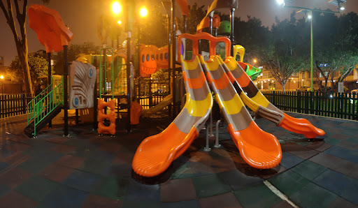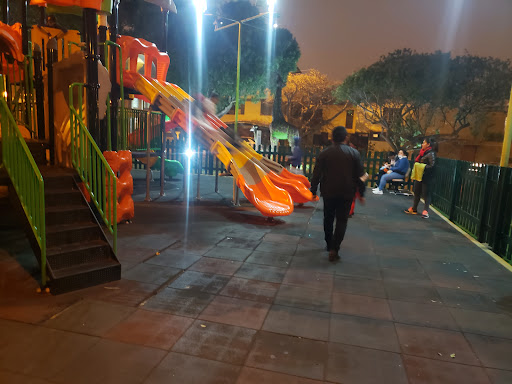 Read moreEs un parque muy amplio con juegos para los niños. Cuenta con tres toboganes de plástico resistente, uno en espiral y otros juegos para que los puedan recorrer. Para los papás hay unas bancas y también hay gimnasio ( todos son en metal ) para los que deseen practicar deportes. También el área de los juegos se encuentra cercado, tiene un sólo ingreso-salida, para evitar que los los niños se salgan del área. Se puede estacionar en los...