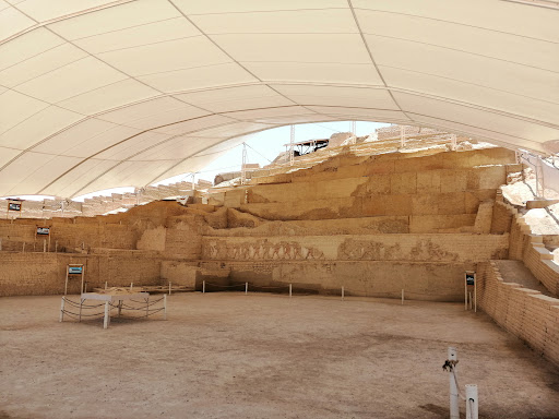 Read moreFive superimposed adobe buildings have been uncovered at the Complejo arqueológico El Brujo in northern Perú. In 2005 the famous tattooed mummy of the Señora de Cao was found in a tomb from 450 AD currently covered by logs in Huaca Cao Viejo, the Temple of Old Cao. The ceremonial place of sacrifice is surrounded by colorful murals. These feature the stylized geometric patterns and artwork of Moche culture (100 to 700 AD). A procession of naked prisoners led by a warrior decorate a painted frieze on a wall here. The naked prisoners have their hands tied to a long pole as they are led to a place...