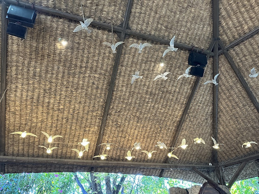 The church itself is full of all things inspired by nature. This nipa-hut open-air structure has a high ceiling that is made out of wood, anahaw, and other native materials. The ceiling is peppered with hanging dove décors that are actually lighting fixtures made out of Capiz shells, which add to its charm. The church’s altar is made out of driftwood and marble—both natural materials as well. A big statue of Jesus was put in a prominent position near the altar to complete this place of prayer...
