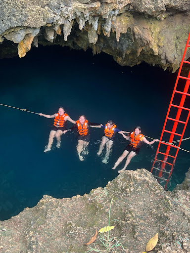 The water in the natural pool is one of the clearest I have ever seen. You can see everything at the bottom even if it is 20 feets below you. There is a ladder to go down to the water level. There are also ropes that have been installed along the sides in the pool to allow people to rest if needed. They also have life jackets on site if you need one.