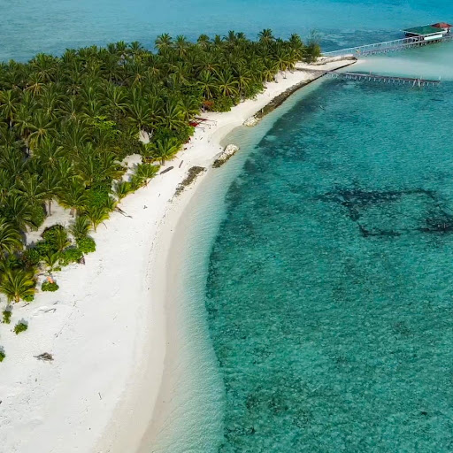 The sand is really white, and the water is clear and turquoise. You might feel like you're in a postcard scene, surrounded by coconut trees.