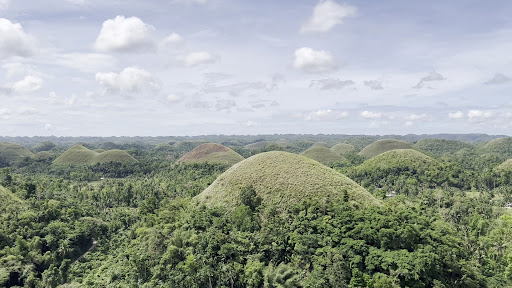 The Chocolate Hills View Deck in Bohol, Philippines, offers a breathtaking vantage point to admire the iconic Chocolate Hills, one of the country's most famous natural wonders. The deck is well-situated, providing panoramic views of the unique landscape, where over a thousand symmetrical mounds stretch out as far as the eye can see. The hills are particularly stunning during the dry season when they take on their characteristic chocolate-brown color.