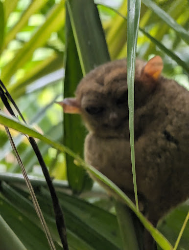 Tarsiers are incredibly shy, nocturnal animals that are highly sensitive to noise and stress, yet they are put on display for streams of tourists during the day. Visitors are led along a short path where tarsiers are pointed out by guides, often perched in the open on low-hanging branches for easy viewing. It felt staged, as if the animals were placed there for our convenience. Despite the "no flash" and "keep quiet" signs, it was clear that many people weren’t following these rules, and staff weren’t actively enforcing them.