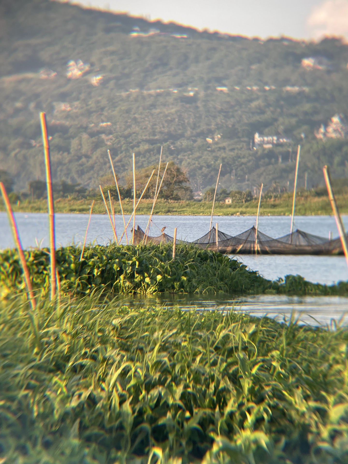 There is a floating restaurant opened in certain hours, and a certain tricycle terminal beside the bridge full of water hyacinths.