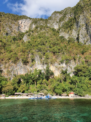 Si tratta di una spiaggia che volge ad ovest, come indica il nome stesso. Si trova sulla costa ovest della Coron island, in una piccola sequenza di spiaggette intagliate nella scogliera a picco sul mare, che sono state attrezzate per consumare il pranzo dei vari tours. Nella piccola spiaggia vi sono una mezza dozzina di tettoie che proteggono tavoli di varie dimensioni. Noi si era in 18, e una tavolata รจ stata imbandita con piatti di ostriche, pesci grigliati (salmoni e tonni), mix di verdure cotte in padella, pollo in adobo e frutta (anguria e banane). Io ho apprezzato il salmone con zucca saltata, poi anguria. Non so se intorno vi sia del reef, dopo pranzo ci siamo...