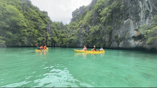 To get to the lagoon, you will kayak from your speedboat/boat. Scoot yourself in a small opening and you kayak inside the lagoon. One part of the lagoon has shallow water and the other is deep blue. There is a small cave, the size of a kayak inside the lagoon. You can swim or snorkel too. Abundant in fish, sadly the corals are dead.