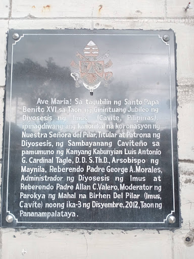 Read moreThe Diocesan Shrine and Parish of the Our Lady of the Pillar - Imus Cathedral, commonly known as the Imus Cathedral, is a Roman Catholic cathedral church in the city of Imus, in the province of Cavite, Philippines. The city, which is the capital of the province, also serves as the seat of the bishop of the Diocese of Imus, the diocese that has jurisdiction over the entire Civil Province of Cavite.