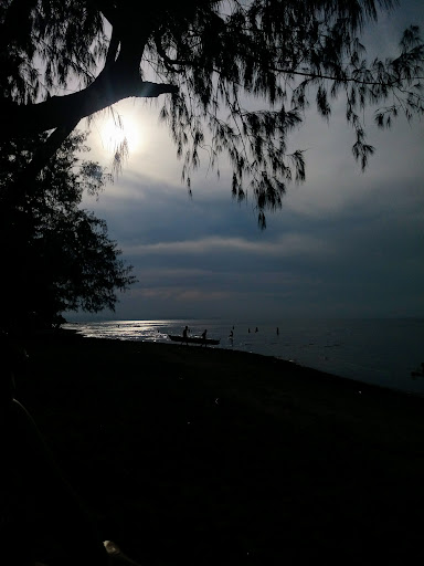 Approx. 2km long public gold brown sand beach. There is a good chance you will be alone – exept the friendly dogs playing, pigs relaxing in the shadow of the beach trees and fisherman going to the sea in evening – quite romantic. Good for a beach walk. Best access in front of Bagum bayan Beach House - please asked the owner to cross his property. The beach is children friendly! No litter, no rocks, no corals, no fish. The beach is cleaned there every day. Fine sand 150m into the sea. Very nice sunsets and starlight. Snacks & drinks available during the day at the Tapsihan, Circumferential (Regional Hwy 480) next to access path to Bagumbayan...