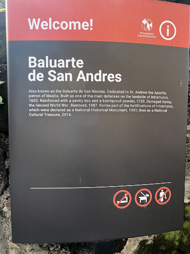 The Baluarte de San Andres is a bastion in Intramuros, which is a part of the Spanish colonial fortification in the historic Walled City. It was built in 1603 to protect the Puerto Real and the southeastern part of Intramuros.