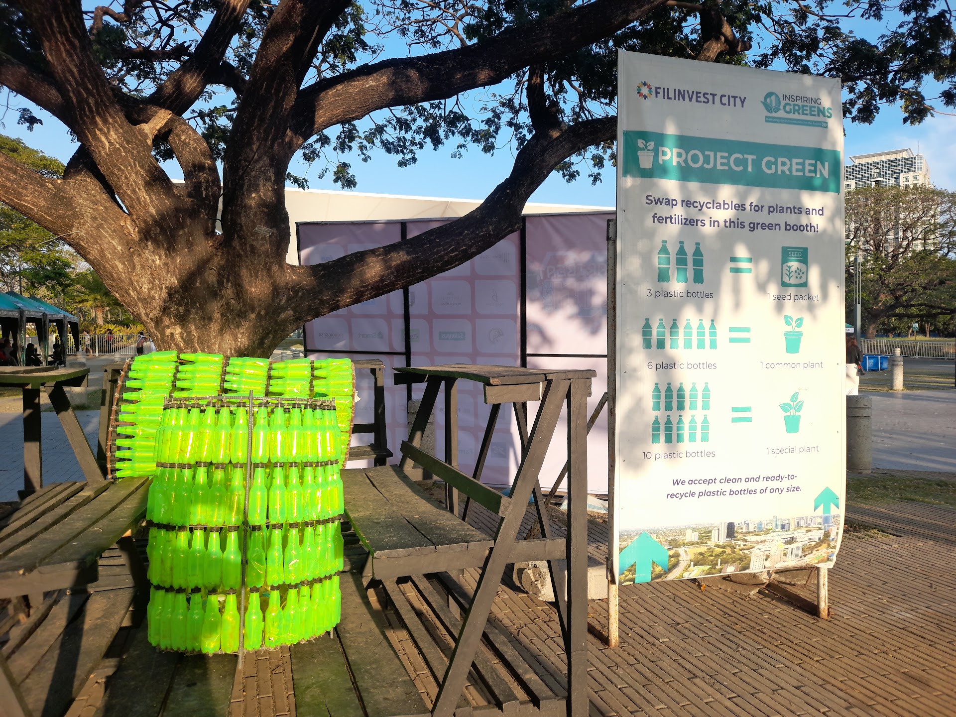 Another aspect where it's behind Molito is in food availability. This is in the form of popup food stalls, but their hours are more limited. The park is open from 6:00 a.m. to 10:00 p.m., but the food bazaar is currently from 4:00 to 9:00 p.m., except Sundays, 7:00 a.m. to 2:00 p.m. Molito is in the middle of rows of restaurants, so it has a lot more options, including a 24-hr. one (Recovery Foods). Of course, there are a lot of similar restaurants in Festival Mall, but it's a bit of walk to get there.
