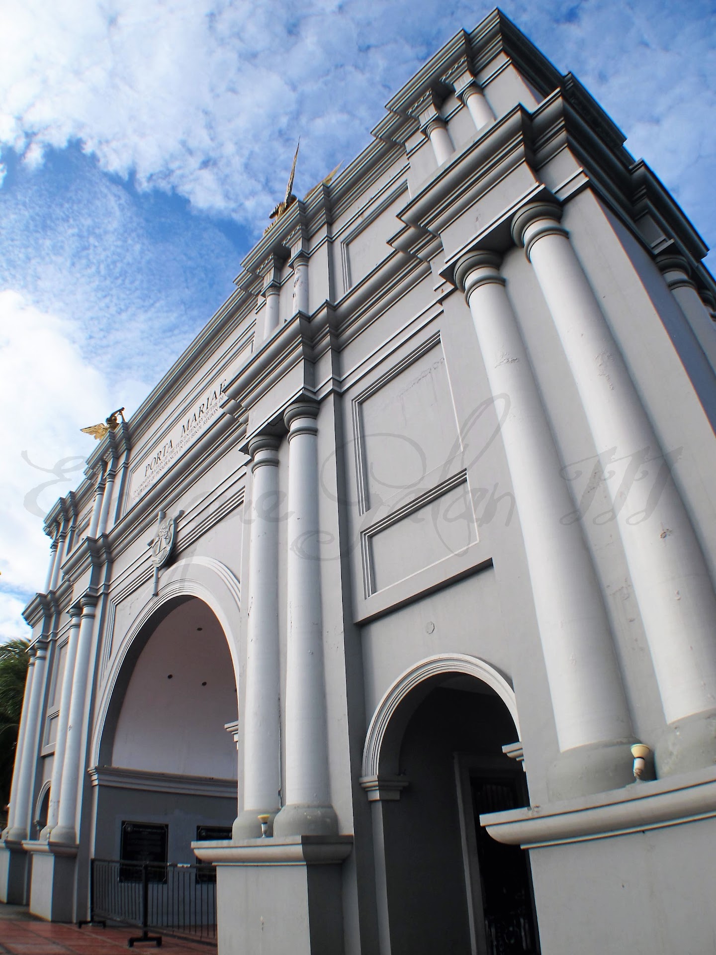 The Porta Mariae is a memorial arch in Naga City commemorating the tercentenary of the devotion to Our Lady of Peñafrancia. The arch, 18 metres wide, 4 metres deep and 11 metres high, is surmounted by a 10 feet tall brass image of Our Lady of Peñafrancia and two angels on each side.