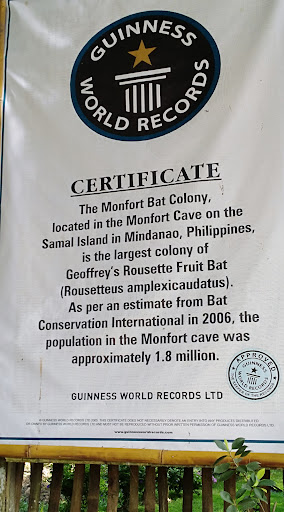 Read moreIf you love bats or want to see colony of bats or bat kingdom then you should visit this place when in Samal Island in Mindanao. It is a guiness world record holder of highest number of fruit bat colony living here. Entrance fee is 150php as of March 2020. Orientation of dos and donts is given prior to tour. There are 5 caves where you can view all bats in different angles. You can smell them and its really stinky coz you also smell their pees. Silence is very importance. I never thought there would be so many bats living in this kind of pace. It is actually a short walk to see all the viewing site. Parking space is available outside. But due to the location pf this bat sanctuary, Private vehicle or car rental is necessary...
