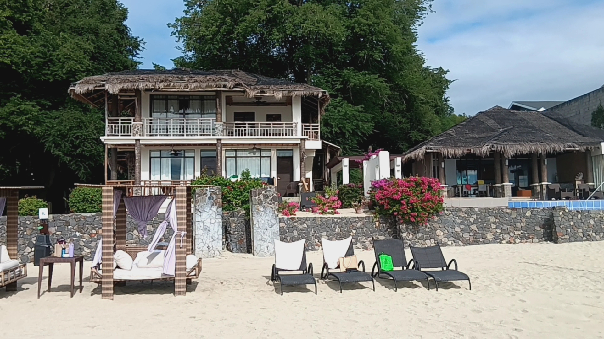 Beachfront is okay. not that fine grained. though the beach gets deep quite quickly when you swim and current is quite strong.