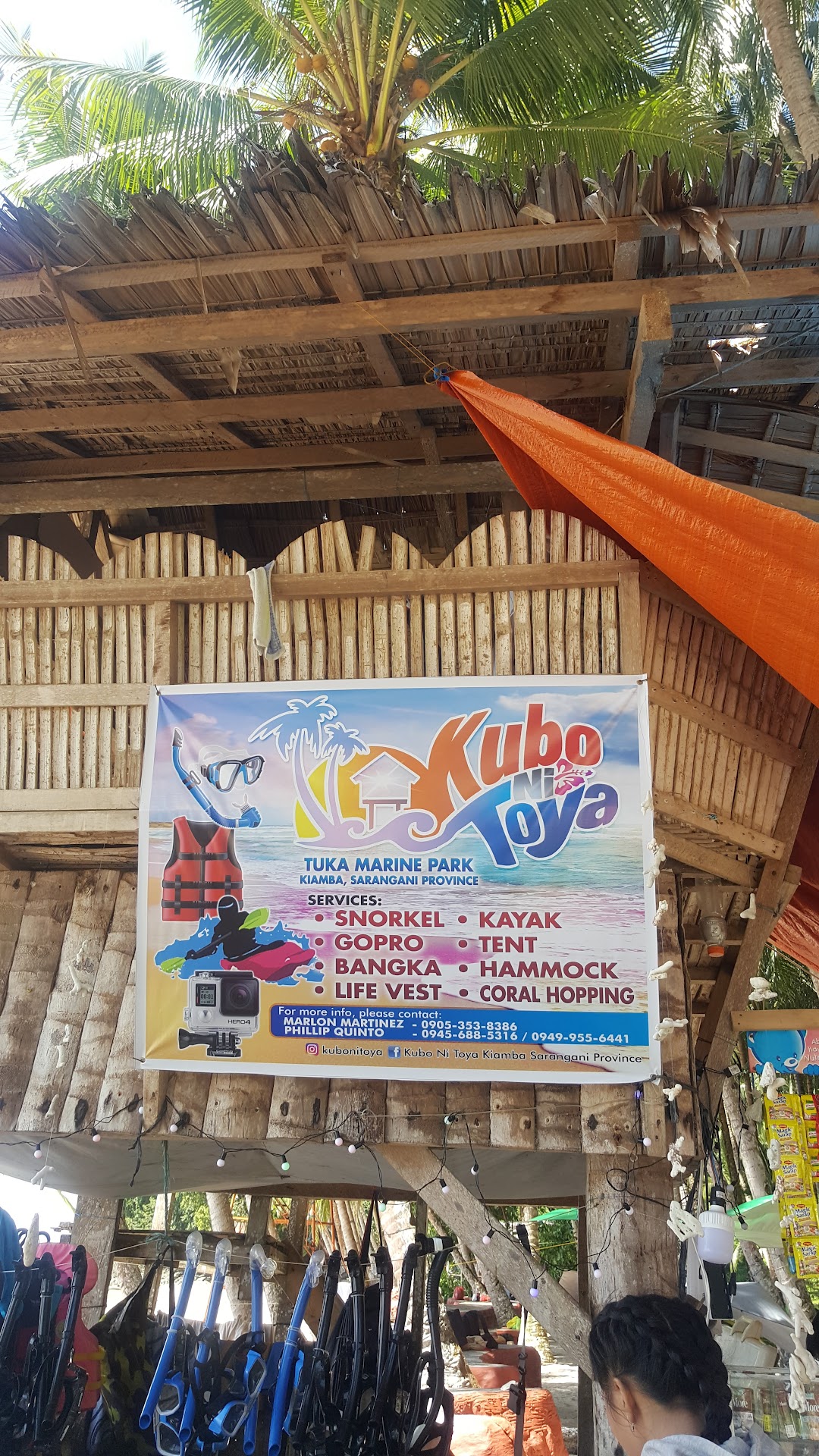 The place was nice though it isn't fully developed yet it is still commendable. The marine park is 20-30 minutes boat away from the community so you better stack up yourselves with baon and all the basic things that you need. There is no restaurant and the store you will find there only offers the basic amongst all the basic things you can buy (soap, shampoo, cup noodles etc...). They have rooms for overnight stay which I prefer over tent or hammock if you want to keep yourselves away from falling objects like coconuts. Apparently they (management) won't be held responsible if accident like this happens. So security and comfort is important and our utmost priority. Lastly, always check the weather condition before going. Unfortunately, the weather wasn't too cooperative when we visited the place. It was windy and low tide. There is no port on the island so when it is low tide, the passengers need to walk the coral reefs around waistline high water (so you gonna go soaking wet just after you arrived). It's corals so the surface or edges are too sharp! Plus the wind was too strong, too wavy making it very hard to walk to the shore. Almost all of the passengers have cut themselves just before they landed to the shore due to the sharpness of the corals. They do have first aid available on the island so I guess this is a normal happenings already. Just learn from our mistakes. Check the weather!