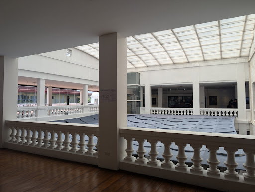 The museum is not very big. 2 stories with an open center court. All white walls, tile floors on the ground level and solid wood floors on the upper level. Very museum-like.