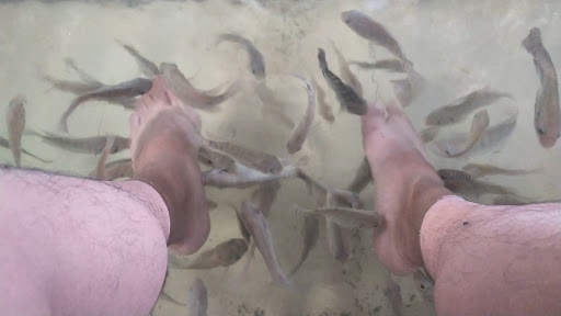 Those "doctor fish" do their thing and give you a ticklish feeling that turns into pure calmness. It's strange at first, but you'll get used to it and start enjoying it.