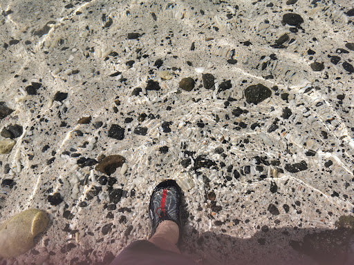 The sand is a bit gritty so aqua shoes are recommended.