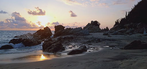 Came here twice. Not sure how to enter this beach but first time was directed to go thru a hotel's backyard, but after 5 minute walking down from the cliff a foreigner woman living there, turned me back rudely that this is a private area no trespassing and had to walk back up in the heat and make a big circle from Bacocho beach. Second time went through Bacocho beach right away, it is about a 10 minute walk, at the end thru big rocks which might be dangerous at high tide and slippery. Problem is beach is public but the area to approach it looks like is private so you have to take a too long walk to get here and then to get back again. It is nice and very small beach, same waves as in other places, difficult to swim in. There are shades but in the private area, same woman came to us the second time, telling us this is private...so not sure what to say about how this beach works. Before you get to it from Bacocho though there is a big beach with nice restaurant and breathtaking surrounding with beautifully organized palm trees. Maybe it is better to book at one of these hotels on the cliff if you want to come to this beach. Definitely there are not so many people here and from the cliff you have amazing view. Also the hotel on the beach has a nice backyard and a whole little playtown built for kids to...