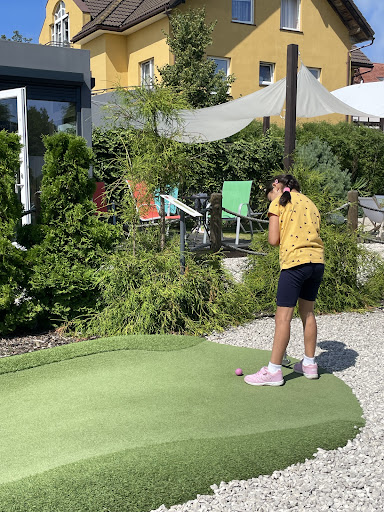 Fajne miejsce, chociaż cena trochę nieadekwatna do tego co się dostaje - 22 zł za jedną grę to naprawdę sporo, my mieliśmy tygodniowy bilet za 66 zł i z kolei trochę się wynudziliśmy... Mało zróżnicowane dołki - główne przeszkody to górki, przez które ciężko wbić piłeczkę. Mogło być więcej takich ciekawych dołków jak np ten zakręcony lub ten z piaskiem. Mimo wszystko ciekawa atrakcja jak ktoś chce się na chwilę poczuć dzieckiem (lub zająć dzieci zabawą:) ). UWAGA DO GRAJĄCYCH LUDZI - proszę nie być tak "uprzejmym" i nie podawać innym piłeczki, która wypadnie poza pole. Niektórzy (np my) woleliśmy grać poza zasadami i wybijać piłeczkę stamtąd, gdzie akurat się zatrzymała, nawet jeżeli było to poza polem i według zasad wypadało grać od startu. Niestety "uprzejmość" (a może złośliwość) innych ludzi psuła nam ciągle zabawę, gdyż co chwilę ktoś nam zabierał z miejsca naszą piłeczkę bo wypadła poza pole... Najlepiej interesować się własną grą i...