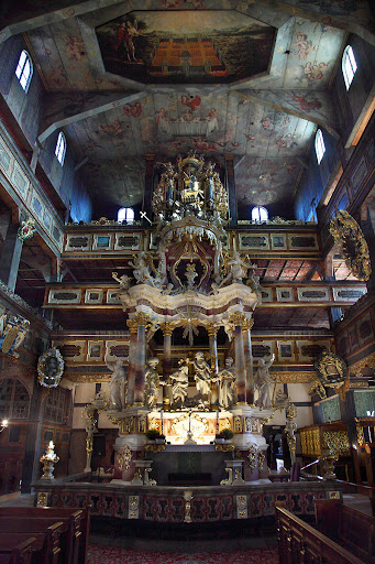 Both of the surviving churches feature multi-tier galleries, thanks to which the capacity of building was extended to about seven thousand people each. The rich décor, which developed over the ensuing decades, integrates exuberant Baroque forms and complex imagery into their architectural framework in a unique way that celebrates the coexistence of Baroque art and Lutheran theology, and reflects the social hierarchy...