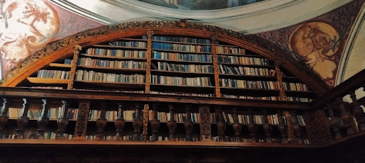 Co do samego obiektu - jest co oglądać! Po za tak rozsławioną już biblioteką, możemy podziwiać m.in. piękne relikwiarze (z całą świątobliwą zawartością), wymyślne ołtarze, globus ze znakami zodiaku czy nawet wystrojone szkielety rzymskich legionistów. Budynek jest w trakcie konserwacji, więc warto co jakiś czas zajrzeć na postępy w pracy. Uroku dodają ćwierkające na dziedzińcu papug,i co jest abstrakcyjnie urokliwą ciekawostką. W sezonie zimowym polecam uzbroić się w grubszy sweter, zanim zagłębicie się do reszty w tajemnicy...