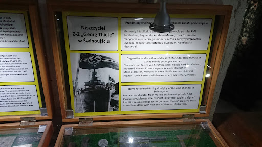 Wszystko oparte na II wojnie swiatowej. Wiele eksponatow az sie prosi o jakies informacje. W czesci typowo wystawowej na kazdym kroku powtarzajace sie guziki mundurowe kriegsmarine. Czesc rzeczy warto by bylo podpisac bo osoby nie znajace sie na wyposazeniu zolnierskim moga nawet nie wiedziec na co patrza. Ogolnie muzeum idace w ilosc a nie jakosc. Na kazdym kroku (glownie na zewnatrz) porozrzucane zelazne fragmenty nie wiadomo czego, nie zakonserwowane, wygladajace jak zlom. Moze warto jedno pomieszczenie zagospodarowac i tam umiescic eksponaty bez wartosci ekspozycyjnych? Czesc zabytkow troche zakonserowana po lebkach, zapaciana taniną i tyle. Wszystko widac jakby szlo w dobrym kierunku ale moze warto skupic sie na rekonstrukcji/zabezpieczeniu fortu o metryce XIX wiecznej niz zasypywac go z kazdej strony II Wojennym "zlomem"? Zwlaszcza slabo wygladaja te okropnie zawilgocone pomieszczenia z grzybem.na scianie.