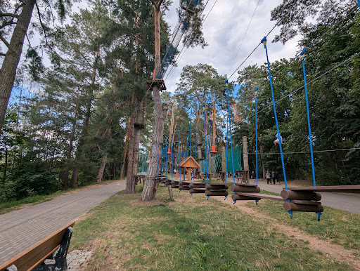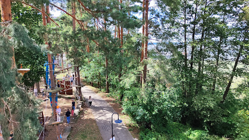 Park ciekawy, z wieloma trasami do wyboru. Chyba z powodu znacznej liczby chętnych "szkolenie" przebiegało raczej pobieżnie. Ale kto kumaty lub kto był wcześniej w jakimś parku, ten sobie poradził. I dodatek. Przyszla rodzina z dwojgiem dzieci i puściło je, bo dlaczego nie na najtrudniejszą trasę. Jedno rozpłakało się już przed przeszkodą. Namówione przez rodziców poszło dalej. Drugiej przeszkody już nie było w stanie pokonać, więc zostało zdjęte przez pracownika obsługi. Czekając na przejście zobaczyłem, że z pierwszej przeszkody innej trasy wycofuje się ojciec z płaczącą coreczką. Drugie dziecko z naszej trasy dotarło do czwartej przeszkody i mimo namów ojca dalej nie dało rady iść. Kolejny raz musiał więc zadziałać pracownik parku. Już bez przystanków przeszliśmy resztę trasy, oddaliśmy sprzęt i zobaczyliśmy jak pracownik wspina się na drzewo, żeby ściągnąć z trasy... to pierwsze dziecko, które inteligentni rodzice puścili jeszcze raz, tym razem na mniej trudną trasę. I tu apel RODZICE! To nie wy idziecie na trasę, tylko wasze dzieci, więc może lepiej poskromić ambicję i puścić je na tę nieco łatwiejszą trasę? Chyba że lubicie fundować mubtakie traumatyczne przeżycia, to...