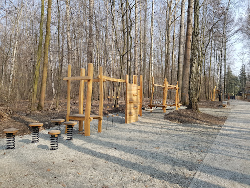 Bardzo przyjemne miejsce na 2-3 godzinny spacer z rodziną. Jest coś dla rowerzystów (dużo fajnych ścieżek po lesie), coś dla najmłodszych (ścianki wspinaczkowe, tyrolka, zjeżdżalnie, drewniane tory przeszkód, tablice edukacyjne), dla kochających konie stadnina, gdzie można nakarmić konie i kucyki albo wykupić lekcje jazdy, a dla dbających o sylwetkę siłownia pod chmurką. Po miłym spacerze warto wpaść na lody gałkowe lub pyszną pizzę do usytuowanej w parku restauracji. Dla zmotoryzowanych najpierw jeden spory i bezpłatny parking, a drugi przy samej restauracji (ten już mniejszy). Mały minusik jednak za to, że plac zabaw jest wg mnie mało przemyślany, bo jest tam kilka instalacji czy pagórków służących nie wiadomo czemu. Dało się zaobserwować, że dzieciaki nie mają tam zbyt dużo do roboty i...