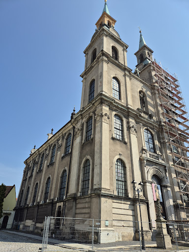 Piękny kościół wybudowany w latach 1734-1739 dla Jezuitów według projektu J. Frischa, na miejscu zburzonego w 1545 zespołu klasztornego Dominikanów. Jednonawowy o sklepieniu kolebkowym, z szeregiem kaplic bocznych i empor. Konsekracja kościoła ze względu na wojnę prusko-austriacką o Śląsk miała miejsce dopiero w 1746 r. Jednak Jezuici nie nacieszyli się długo swoim arcydziełem gdyż w roku 1776 zakon uległ kasacie a kościół pełni od tej pory funkcję świątyni parafialnej. W latach 1854-1856 dobudowano dwie monumentalne wieże, tym razem według projektu barona von Wilczka. Wewnątrz wyróżniają się bajeczne na sklepienne freski J.Kubena (1739-1745) przedstawiające chwałę Krzyża Świętego, misje zakonu jezuitów oraz postacie świętych. Prawdziwe cudo zapierające dech w piersi. Całość wnętrza kościoła upiększona jest polichromią, składającą się ze 115 scen przedstawionych na ikonach o różnej treści i wielkości ikon. Interesującym elementem wnętrza kościoła jest pieta - figurka Maryi trzymającej na kolanach martwego Jezusa Chrystusa, która jest marionetką o poruszającej się...