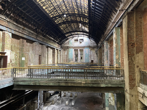 Wielkie, monumentalne hale mieniące się kompozycjami światła, stylowe klatki schodowe i podziemia przypominające coraz bardziej katakumby. Kolejne schody w dół, kolejne chodniki, kolejne poziomy pod ziemią. Industrial wymieszany z urbexem.