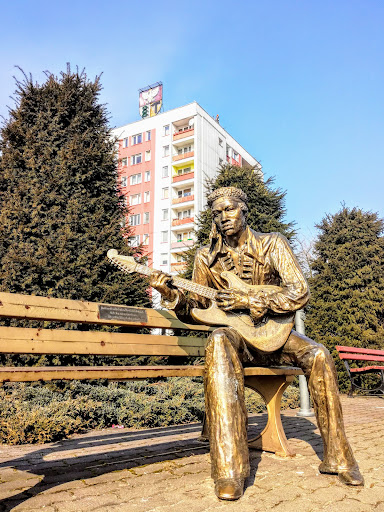 The monument, by Augustyn Dyrda, was created in 1970. The original inscription read: "To the Heroes of the Red Banners." From 1990 to 2006, after being defended by city residents against demolition, it bore the following inscription: "To Jimmy Hendrix. Kurt Cobain. Make love, not war. War is over. To all who love freedom." In 2006, the monument received a new inscription: "To the Heroes of the Red Banners, Dąbrowa. Creators of the history of the struggle for national and social liberation." The city's residents are strongly connected to this monument, and every attempt to demolish it is met with mass protests. Now a cult...