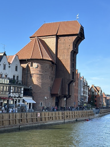 The Żuraw Crane in Gdańsk is one of the city's most iconic landmarks and a powerful symbol of its rich maritime history. Located along the Motława River in the Old Town, this medieval crane is part of the National Maritime Museum and stands as a reminder of Gdańsk’s role as a major port in the Hanseatic League. Built in the 14th century and restored in the 15th century, the Żuraw functioned both as a cargo-loading crane and as a city gate. It could lift up to 2 tons at a time, powered by workers walking inside large wooden wheels, creating a pulley system.