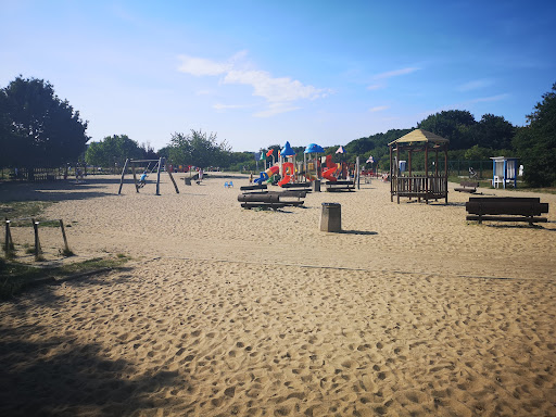 Dwa największe minusy tego miejsca, podłoże pod wszystkimi atrakcjami... piasek... ostry, słabej jakości... powinna być zastosowana odpowiednia mata chroniącą podczas upadku, ktoś ewidentnie szukał oszczędności... Sporadyczne drzewa w ilości kilka praktycznie nie dają wogole cienia przez co nie jest możliwe używanie tego placu w ciągu dnia, gdzie słońce naprawdę mocno grzeje... Zjeżdżalnie się nagrzewają i nie nadają się do użytku.