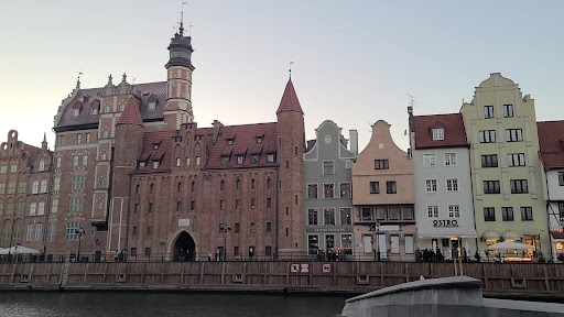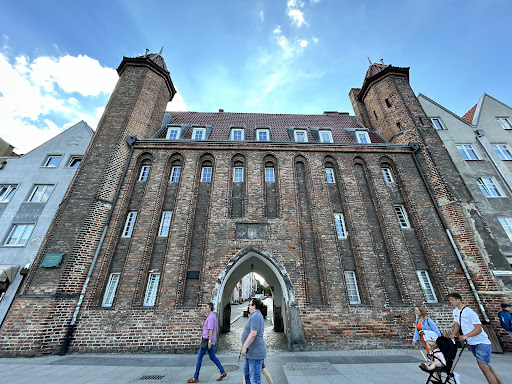 Read moreThe Straganiarska Gate, also known as Market Stall Gate (Häkertor), is the northernmost preserved water gate in Gdańsk. Built between 1481 and 1492 in the Gothic style with Flemish influences, the gate features an asymmetrically placed pointed arch and is adorned with the three coats of arms of Republic of Poland, Royal Prussia, and Gdańsk on the Motława River side. It also had a side wing adapted to the neighboring Fish Market. The gate has undergone numerous changes, including losing its southern turret in the 19th century and suffering significant damage during World War II.