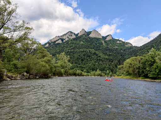 Read moreMoja ocena dotyczy spływu kajakiem. Jest to najdłuższy spływ w Pieninach. Z trasą długości około 25 km pontono-kajak świetnie sobie poradził płynąc spokojnym tempem z przerwą po słowackiej stronie nie całe 5 godzin. Miałem pewne obawy przed bystrzami i spiętrzeniami, jednak wszystko szło gładko, wystarczyło znaleźć główny nurt i tylko sterując płynąć z prądem. Należy zabrać ze sobą ubranie na zmianę i jakieś klapki lub buty do wody, ponieważ trasę skończymy cali mokrzy. Mijając Szczawnicę spływ kończymy w miejscowości Krościenko. Po lewej stronie trzeciej wyspy na przystani oznaczonej flagą z napisem "META przystań pod zamkiem". Czekają na nas tam ławki, Toi-toi kosz na śmieci, na nas również czekały wcześniej wybrane rowery. Jeżeli ktoś nie ma doświadczenia w jeździe rowerem po górach, odradzam tą formę powrotu. Żona wymiękła po kilkunastu kilometrach i musieliśmy zawrócić zwłaszcza że mapy Google za nic nie chce pokazać właściwej łatwej trasy powrotu, która wiedzie przez Szczawnicę ścieżką pieszo- rowerową do Czerwonego Klasztoru i dalej już polską stroną ze Sromówców na przystań, około 25km. Prowadzi natomiast przez Haluszową na duże przewyższenia. I tutaj sprostowanie dla wszystkich narzekających na obsługę spływu! Nie było żadnego problemu ze zmianą decyzji! Czekając na busa mieliśmy czas zjeść obiad w pobliskim zajeździe Sokolica, ( w końcu mieliśmy rowery więc z dotarciem tam nie było problemu, a mają tam świetne pierogi i mrożoną kawę). Spływ zakończyliśmy busem po około 8 godzinach. Nic nie dopłacając za przywożone kłopoty. Ps. Kajaczki rzeczywiście mogły by się znajdować bliżej brzegu, bo trzeba je nieść do startu, a do lekkich nie należą. Jednak z uwagi na filigranową budowę ciała mojej żony obsługa ją w...