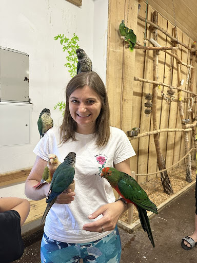 Tak bliskiego obcowania z ptakami nasza rodzinka jeszcze nie miała! Po pierwszej fazie SZOKU ( obsiadły nas na wejsciu)..Już tylko delektowaliśmy się ich towarzystwem! Nie można pominąć faktu,że właściciel jest serdeczną osobą i potrafi o papugach ciekwie opowiadać...