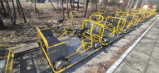 Read moreŚwietne miejsce na rodzinny wypad, zarówno miłośnicy kolei jak i fani rekreacji i dobrej zabawy znajdą tu coś dla siebie. Trasa prowadzi po nieczynnej linii kolejowej pomiędzy Alwernią, Regulicami a Nieporażem. Przejazd odbywa się drezynami poruszającymi się jedna za drugą w grupie by po dotarciu do punktów docelowych zmieniać kierunek na powrotny dzięki specjalnie do tego przygotowanych obrotnicach. Jazda w kierunku zachodnim do Nieporaza odbywa się z kilkoma odcinkami pod górę zatem trzeba nieco wcisnąć nogi w pedały. Drezynie która mieści od czterech do pięciu osób do napędzanie mamy 2 stanowiska w tym jedno z nich dodatkowo obsługuje hamulec. Ten przydaje się szczególnie przy powrocie do Regulic gdzie można się nieco rozpędzić na pochyłościach linii co daje dużo frajdy. Przejazd odbywa się poprzez teren zabudowany zatem trzeba mieć na uwadze krzyżujące się ze szlakiem drogi, w 2 miejscach wymagane jest wstrzymanie ruchu drogowego. Idylliczne otoczenie z małą zapomnianą stacyjką i urozmaiconym pofalowanym terenem ze skałkami wapiennymi wraz potokami wśród niewielkich lasów sprawia że przejazdy drezyna jest wręcz odprężający. Dodatkowo miła i pomocna obsługa pomaga zrealizować przejazd bezpiecznie i komfortowo. Napewno zachęca to do ponownych odwiedzin, należy przy tym pamiętać o...