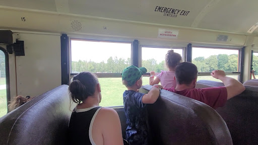Byliśmy w sobotę w lipcu 2025 r. Przy wejściu do parku kasjerka zaznaczyła nam miejsce zbiórki o godzinie 14:00. Z parkingu ruszało naraz około 10 autobusów. W każdym autobusie był też przewodnik. Przejazd rasowym amerykańskim autobusem trwał około 45 minut. Na końcu można było wysiąść przy parku miniatur lub wrócić na dół na parking.