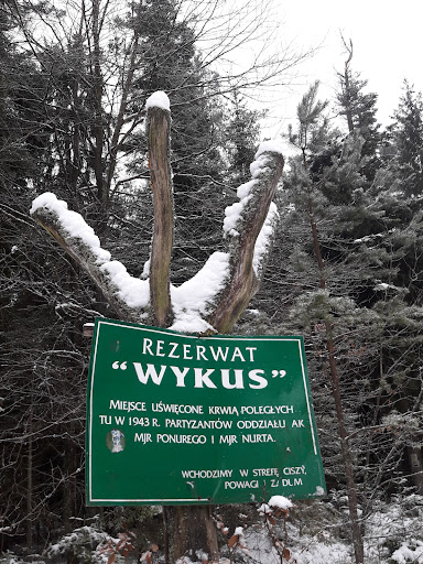 Rezerwat i miejsce pamięci w jednym. Położone w samym środku wielkiego kompleksu leśnego, objętego ochroną w ramach Sieradowickiego Parku Krajobrazowego. Rezerwat obejmuje wzgórze Wykus, u podnóża którego w wąskiej dolinie wije się krystalicznie czysta rzeka Lubianka. W niedostępnych zakamarkach lasu, w czasie II wojny światowej, założył swój partyzancki obóz major Jan Piwnik "Ponury", cichociemny. Na skutek zdrady jednego ze swych podkomendnych, zgrupowanie zostało otoczone przez siły niemieckie i rozpętała się największa bitwa partyzancka (z udziałem samolotów Luftwaffe). Dzięki dobremu wyszkoleniu i uzbrojeniu, zgrupowanie przy niewielkich stratach zdołało wyrwać się z okrążenia. W miejscu obozu stoi obecnie kapliczka z wykutymi pseudonimami poległych. Ale również pojawiają się tabliczki poświęcone pamięci żołnierzy zgrupowania poległych i zmarłych po bitwie. Co roku w czerwcu, w rocznicę bitwy, odbywają się uroczystości...