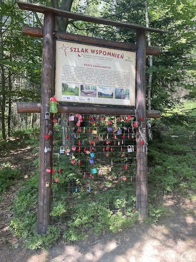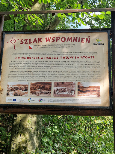 Piękny, przedwojenny krzyż upamiętniający smutną historię miłosną, który warto zobaczyć. Wędrówkę polecam rozpocząć od budynku przy ul. Lachy Dolne 1 w Brennej, ponieważ na jej końcu znajduje się skład drewna i stoi znak z zakazem parkowania. Droga jest co prawda dwukrotnie dłuższa niż od ulicy Składowej, ale za to 100 razy łatwiejsza. Trasa od Składowej to istna męczarnia o myślę 60 stopniowym nachyleniu i luźnych kamieniach spadających za plecami. Absolutnie odradzam pchania się na nią z dziećmi, bo nie dadzą rady. Trzeba pilnować się biało-czerwonych oznaczeń na drzewach i dotrzecie najpierw do tabliczki z opisem tradycji pasterskich Brennej, a chwilę później do samego...