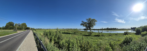 Z ulicy można podziwiać moim zdaniem najładniejszy fragment brokowskiego krajobrazu - łęgi na których latem żyje mnóstwo bocianów.