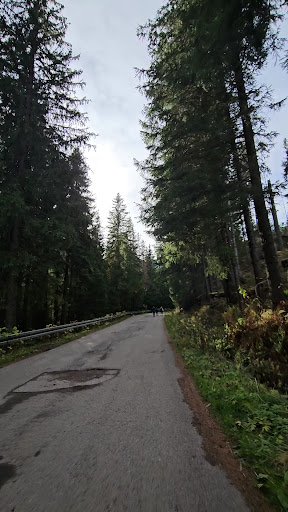 The forestry was beautiful. There were also "shortcuts" which cut through the winding asphalt road. They were mainly dirt and stone roads which is way more challenging than asphalt roads. There is a cafe on the way up, close to the lake but the food seemed like they were just microwaved frozen food. We didn't have them.