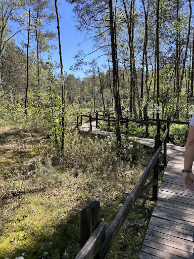 Read morePolecam zacząć spacerowanie z parkingu zaraz przy ulicy Prostej. Do rezerwatu dojdziemy z tego miejsca zielonym szlakiem, mijamy siłownie plenerową, wchodzimy na wydmę, schodzimy po drewnianych wzmocnieniach, następnie z małej ścieżki wg znaków wchodzimy na kładkę prowadzącą po bagnie, wychodząc z ścieżki na jej końcu lub w zależności od kierunku zwiedzania wejściu znajduje się drewniana "brama". Dla chętnych lub dla tych którzy się załapią w godziny otwarcia, znajduje się tu wejście do Centrum Edukacji Leśnej. (Jeszcze nie miałam okazji zobaczyć tego miejsca)Wychodząc z drewnianej "bramy" kierujmy się na prawo, podążając utwardzaną szeroką leśną drogą. I docieramy na parking. Znajdując się na kładce warto zwrócić uwagę na roślinność jak tu rośnie, piękna unikatowa dla terenów silnie podmokłych. Szczególnie na rosiczkę (maj-sierpień), maleństwo (na oko nie więcej niż 10cm) rośnie tu w ogromnej ilości i warto skierować wzrok w dół, aby dokładnie się jej przyjrzeć. Sprawne oko, znajdzie zatopione w ich sokach owady. Nie zaciągać się powietrzem głęboko, bo panuje tu całkiem intensywny zapach.